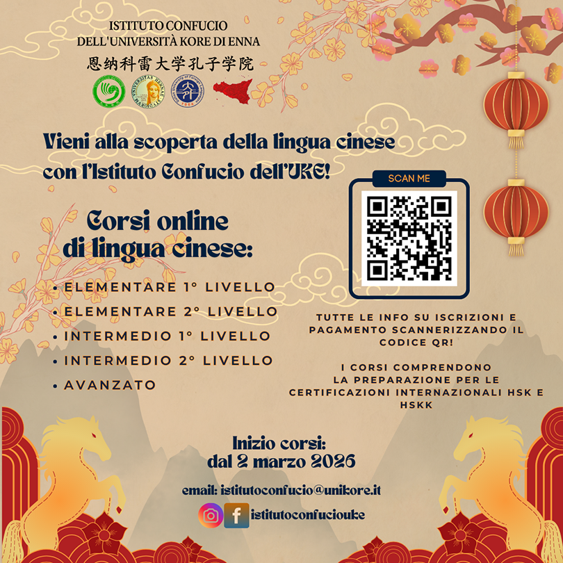 Sono aperte le iscrizioni ai Corsi online di Lingua Cinese, con inizio dal 2 marzo 2026.